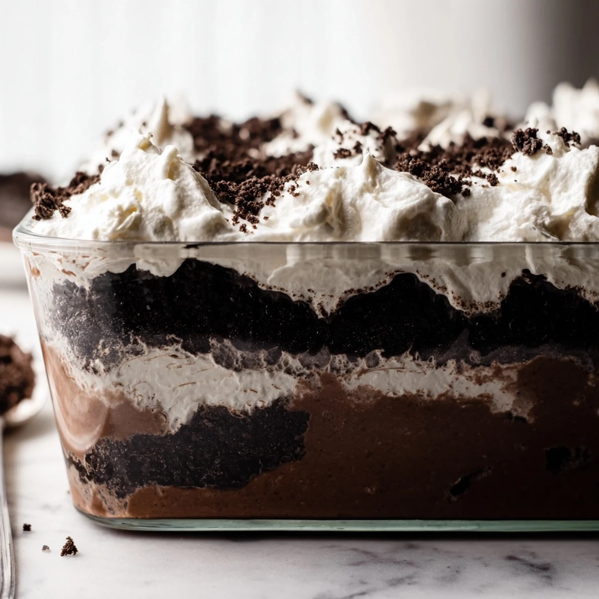 Store assembled dirt cake in the refrigerator, covered tightly with plastic wrap or a lid. It will keep well for 3-4 days, though the crumble topping may soften slightly over time. For best texture, add any reserved fresh crumble just before serving leftovers.